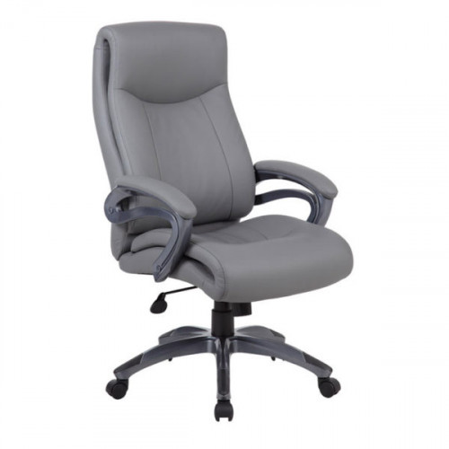 When it comes to comfort, the double layer executive chair will make sure you never settle for second best. It is elegantly upholstered in grey LeatherPlus, a comfortable combination of leather and polyurethane that provides softness and durability. In addition to its padded armrests and gun metal finish, it features pneumatic gas lift seat height adjustment and adjustable tilt tension control. All of this rests atop a large 27” nylon base with five hooded double wheel casters.